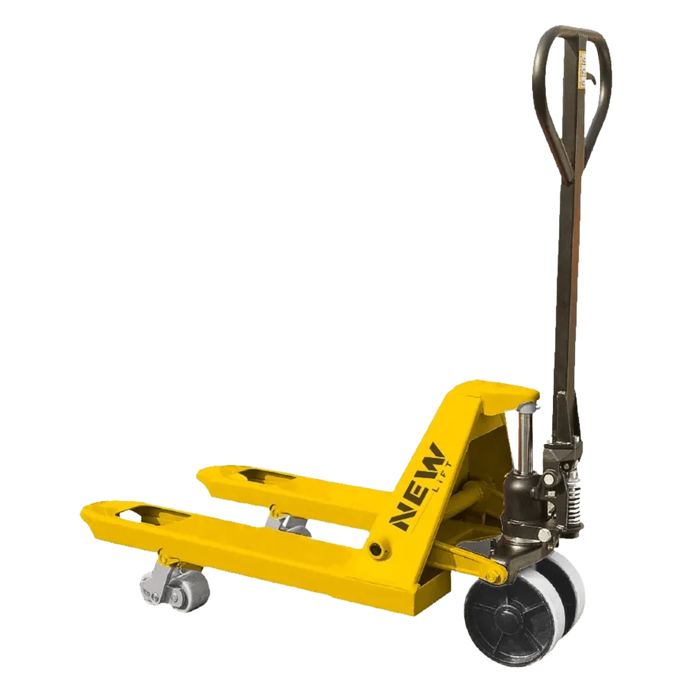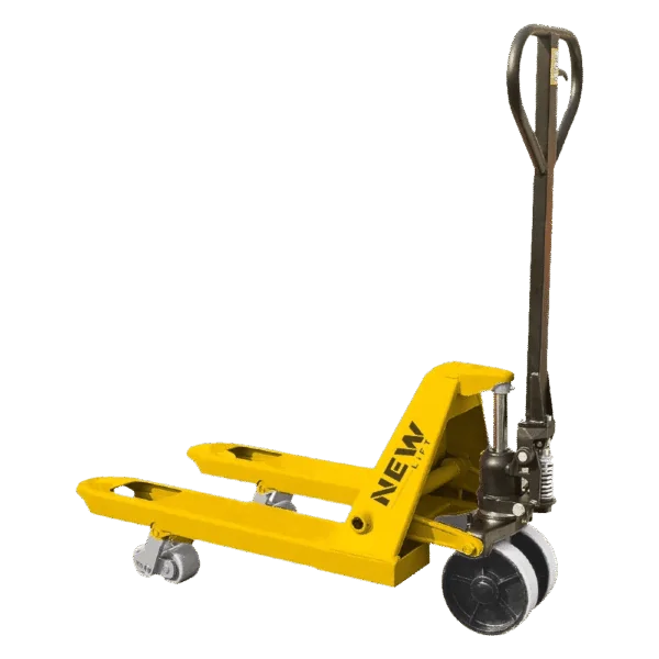 2.5 ton kapasiteli kısa şase manuel transpalet, 800 mm çatal boyu ve kompakt yapısıyla dar alanlarda hızlı, güvenli ve verimli taşıma sağlar.