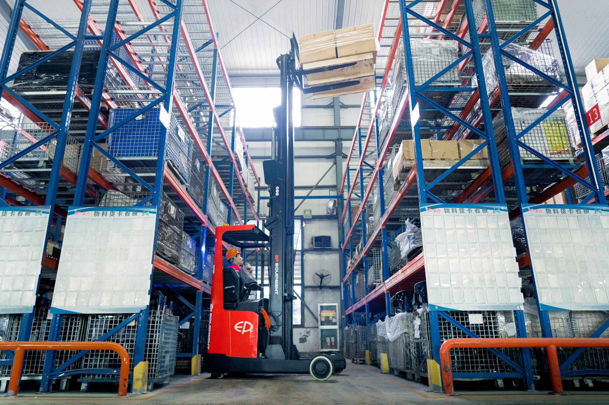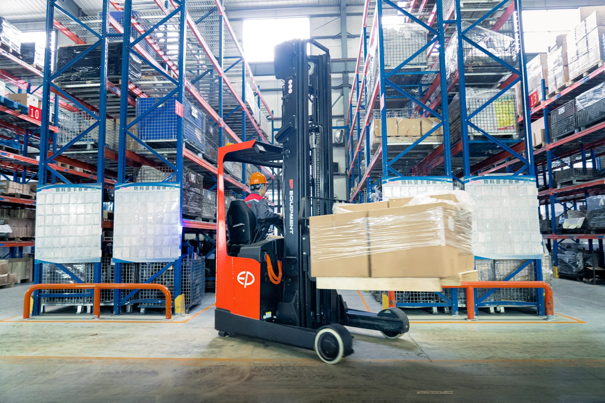 EP CQD20LB modeli, 2.000 kg taşıma kapasitesi ile yüksek raflı depo ve lojistik merkezlerinde ağır yüklerin güvenle istiflenmesi için geliştirilmiştir.