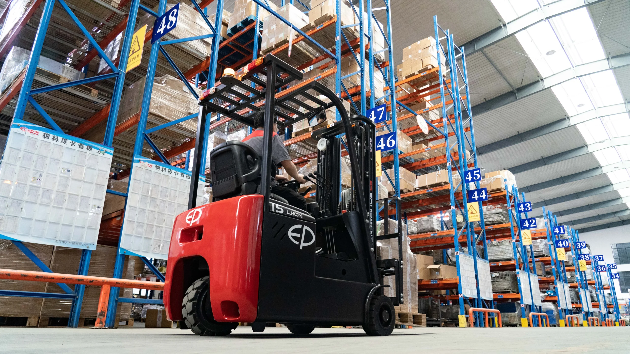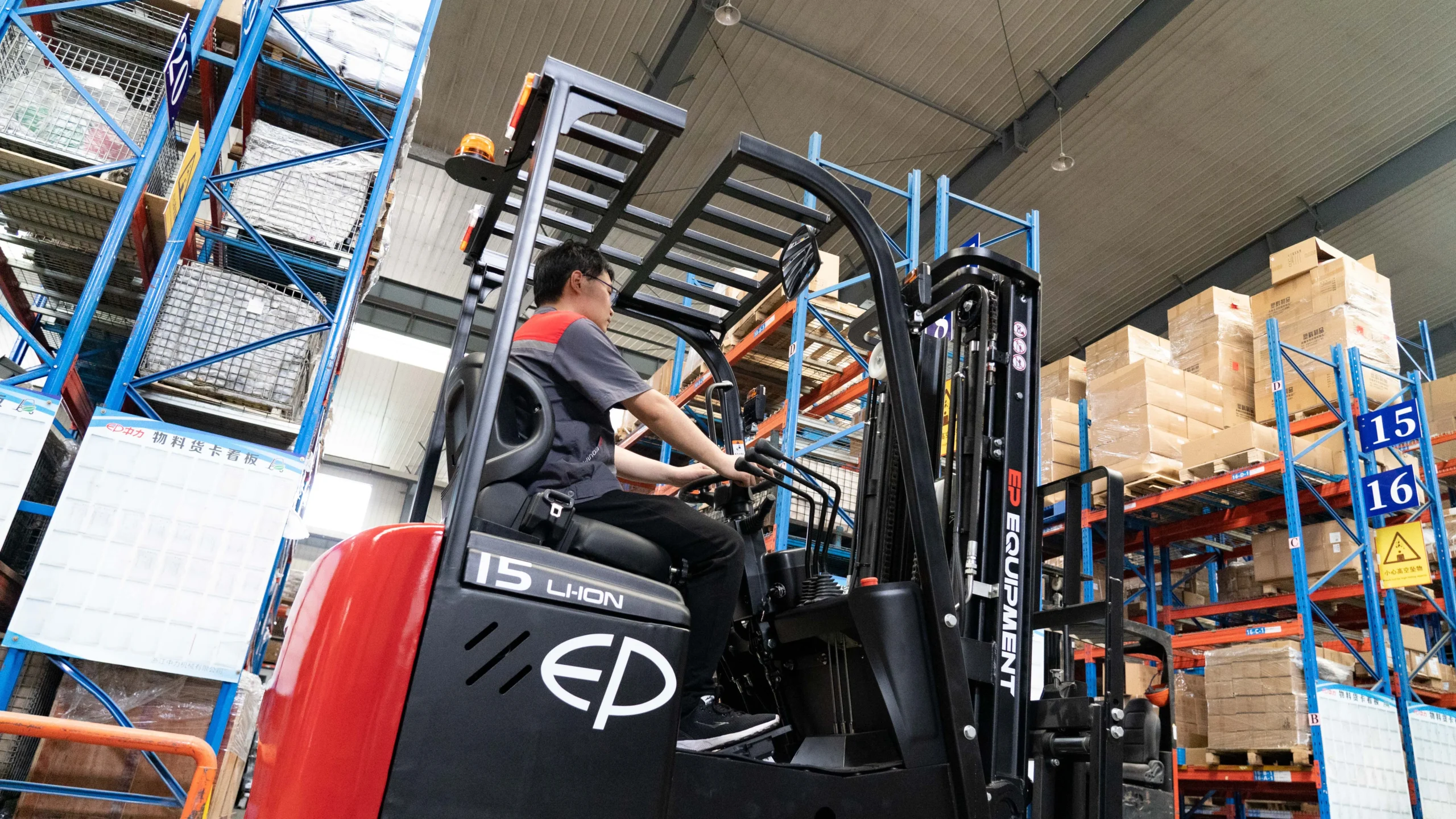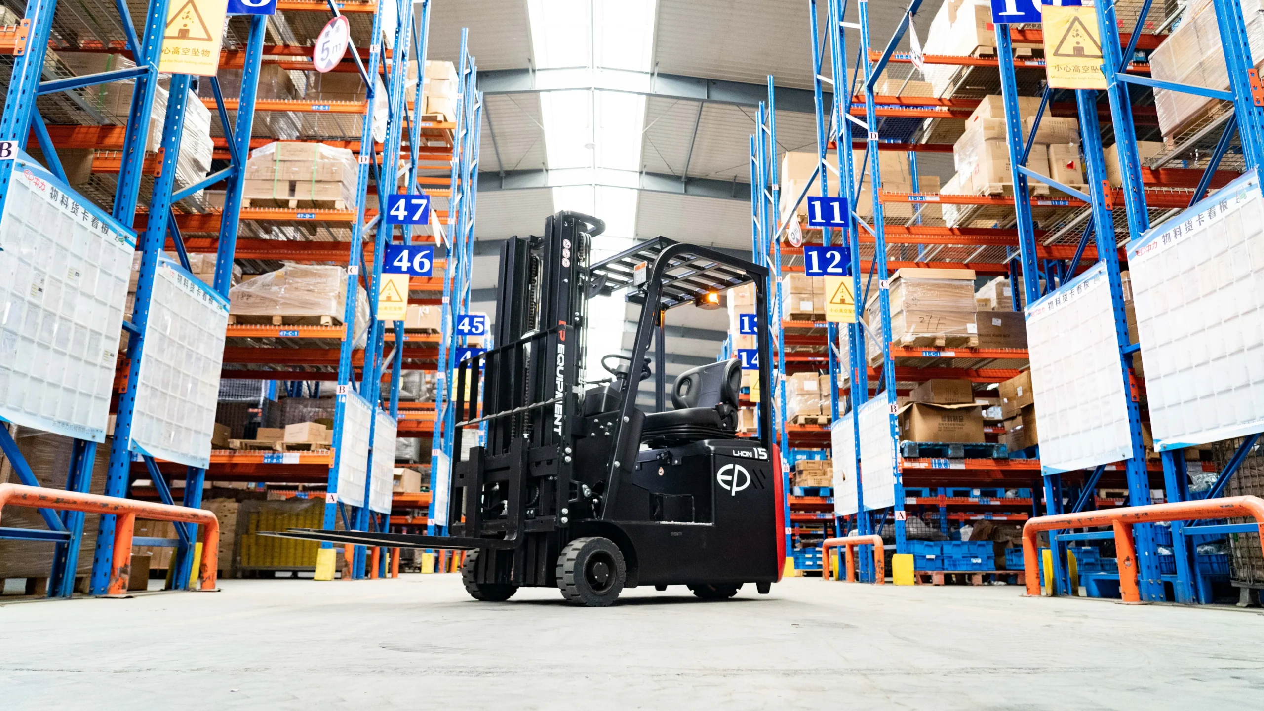 EP EFS151 modeli, 1.500 kg taşıma kapasitesi ile hafif ve orta ölçekli yüklerin kontrollü şekilde taşınmasını sağlar.