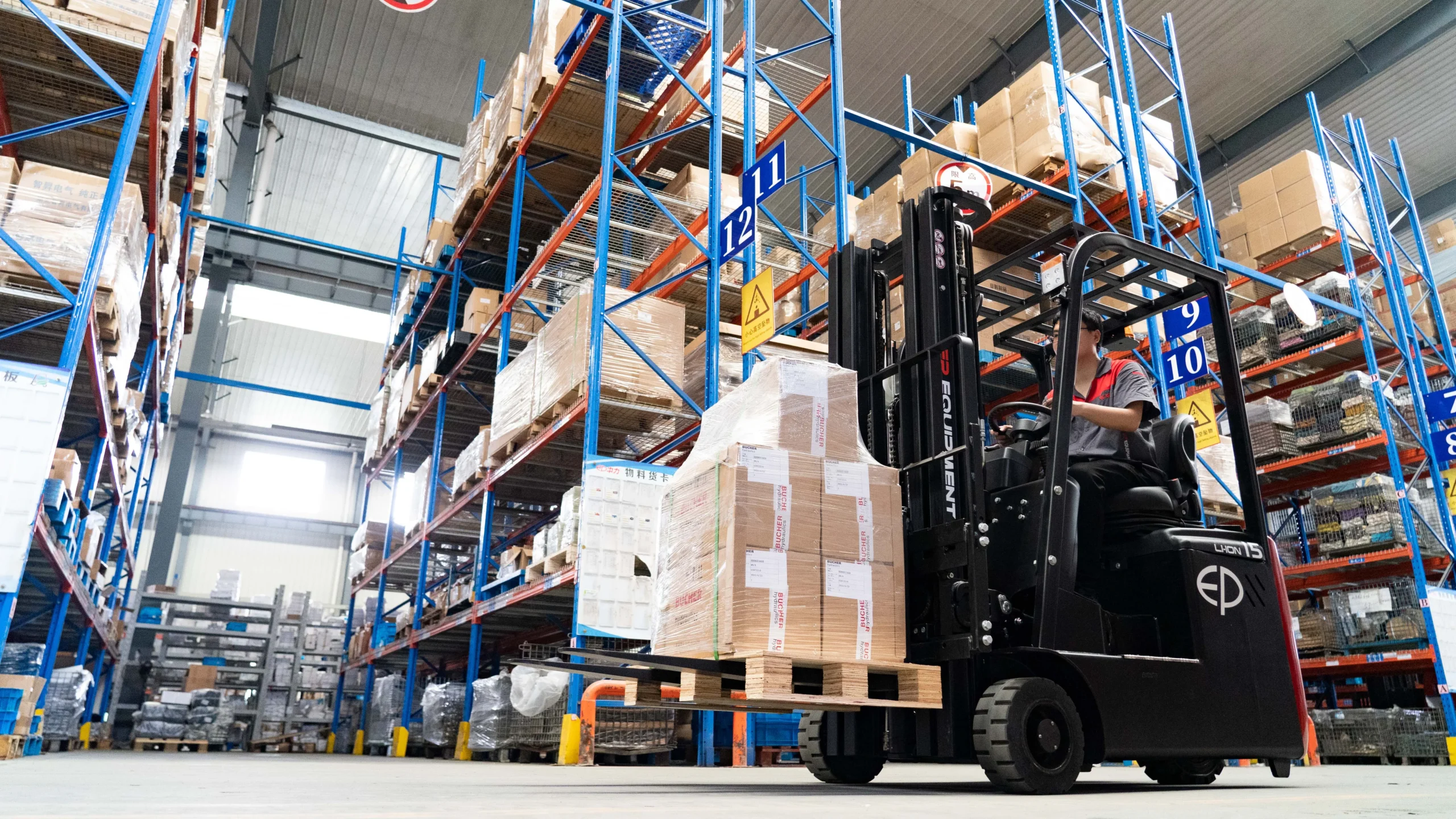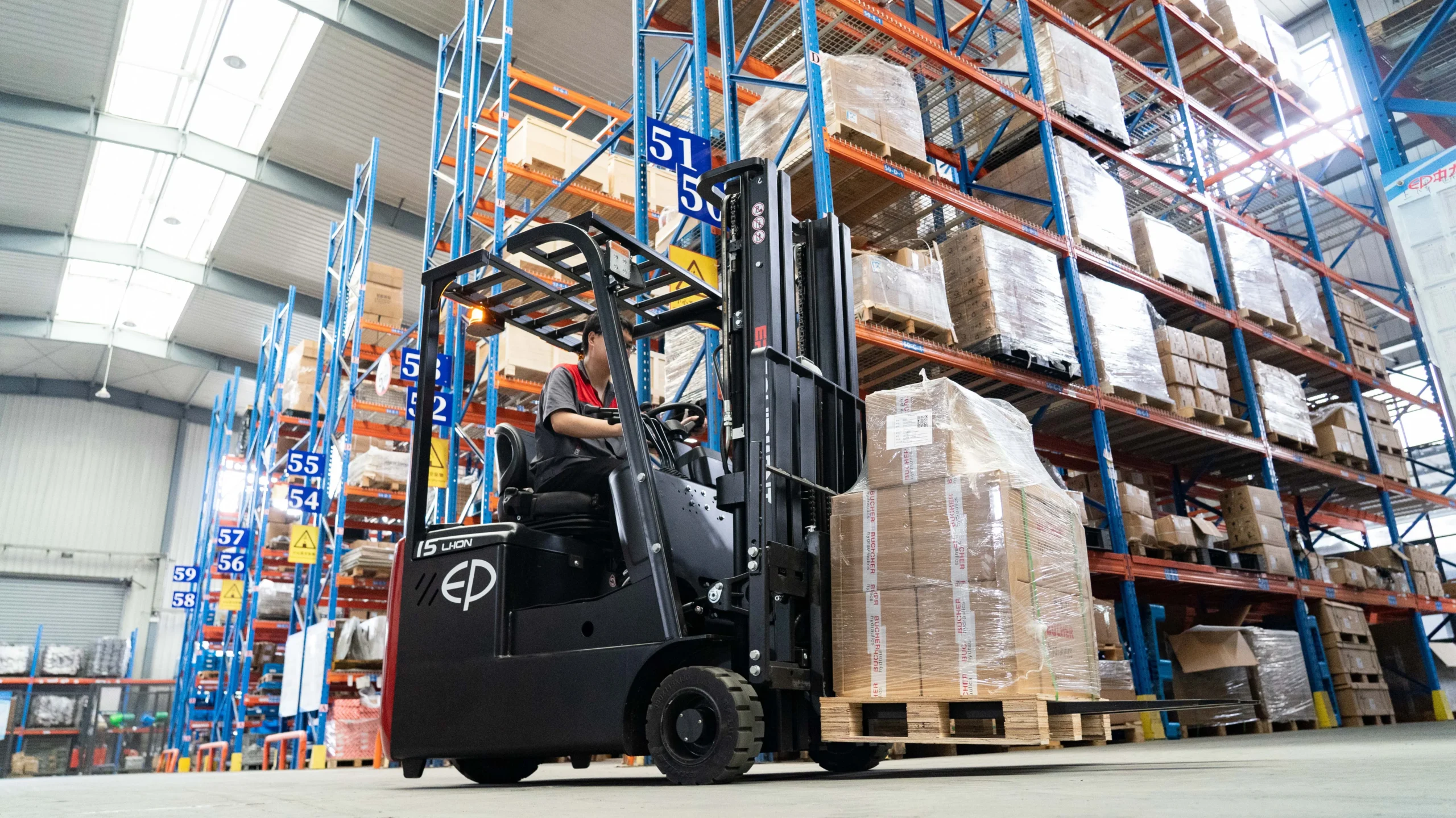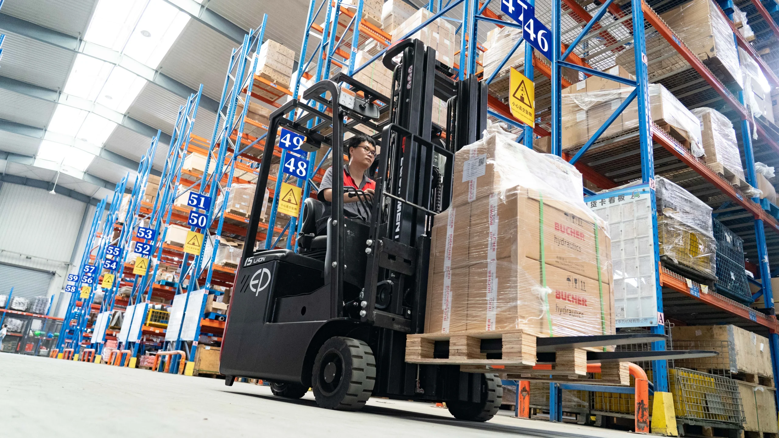 EP EFS151 modeli, 1.500 kg taşıma kapasitesi ile hafif ve orta ölçekli yüklerin kontrollü şekilde taşınmasını sağlar.