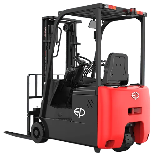 EP EFS151 elektrikli forklift, 1.500 kg taşıma kapasitesi, kompakt 3 tekerlekli yapısı ve 48V 150Ah lityum bataryası ile düşük tavanlı ve dar alanlı tesislerde sessiz, çevik ve verimli bir çözüm sunar.