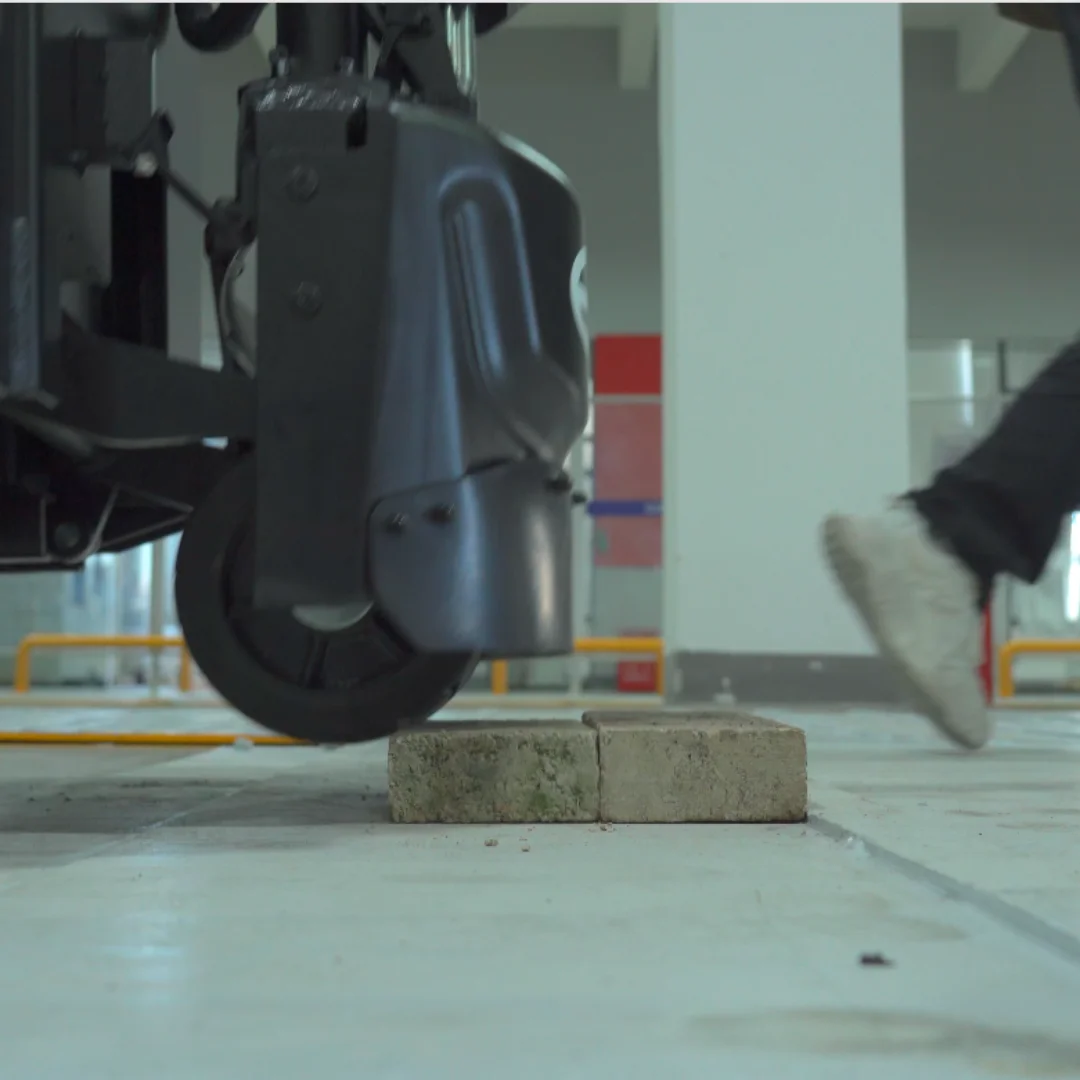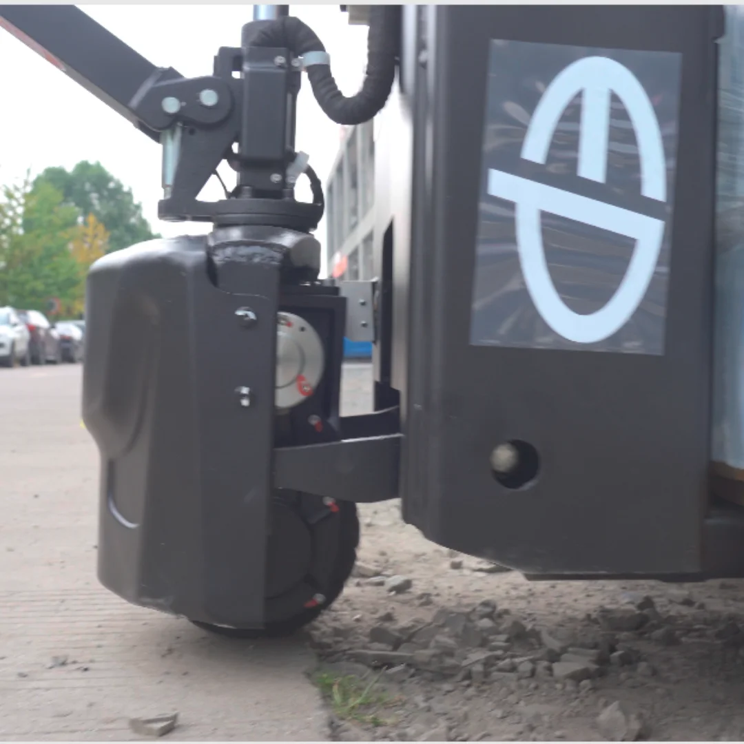 Güçlendirilmiş kauçuk tahrik tekeri ve çoklu yük tekeri yapısı; eğimli, kaygan ve düzensiz zeminlerde daha yüksek tutunma sağlar.
