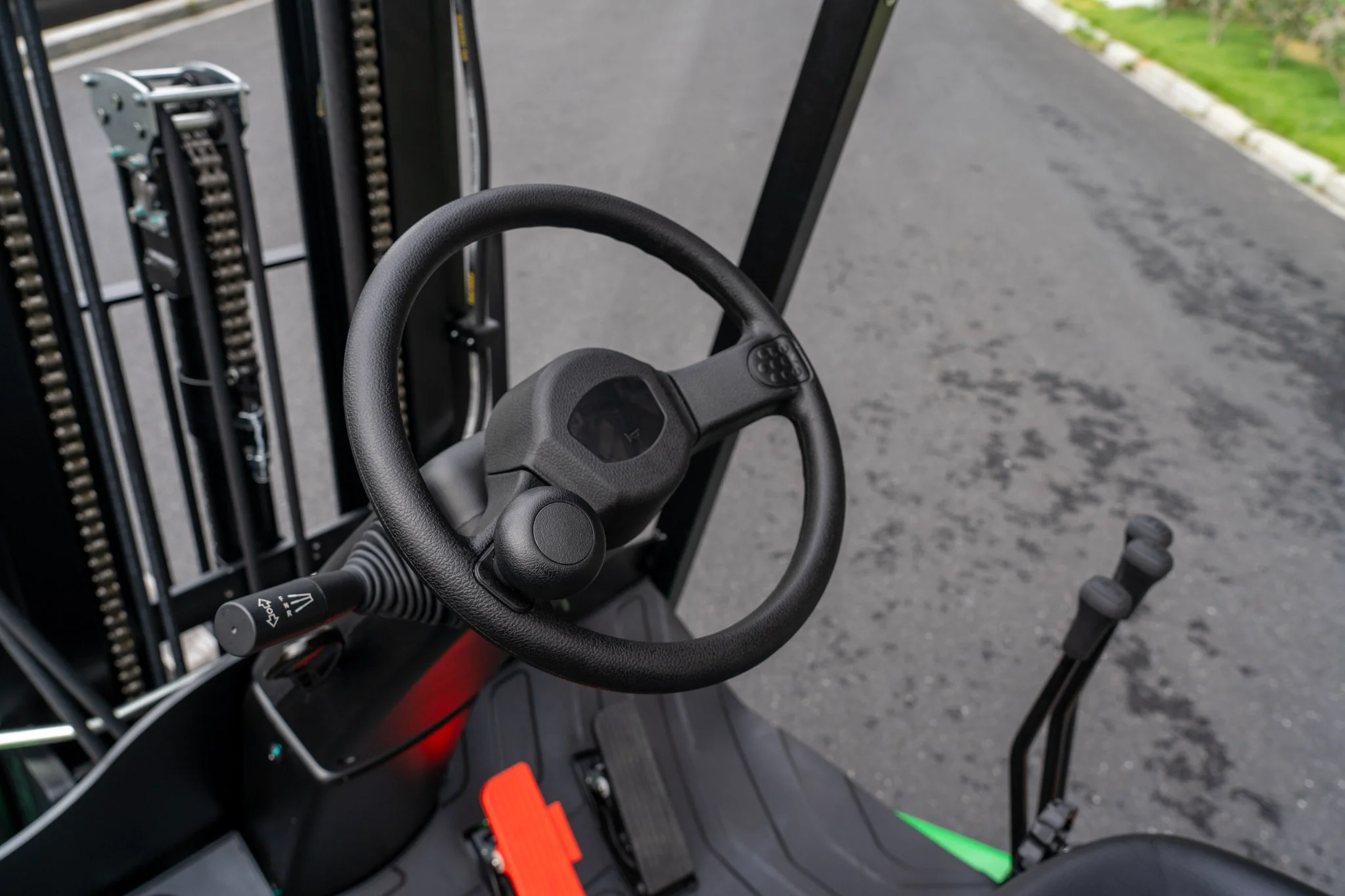 Optimize edilmiş 1.950 kg servis ağırlığı, forkliftin yük altında stabil çalışmasını destekler.