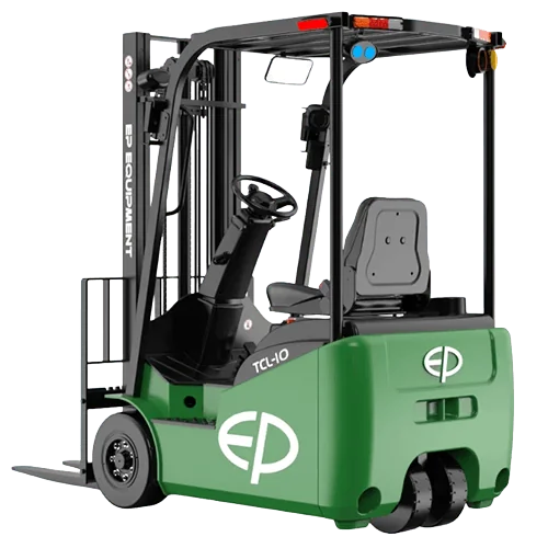 EP TCL101 elektrikli forklift, 1.000 kg taşıma kapasitesi, 80V Li-ion batarya teknolojisi ve süper kompakt 3 teker tasarımı ile dar koridorlar, mezzaninler ve düşük tavanlı alanlar için özel olarak geliştirilmiş, yüksek manevra kabiliyetine sahip profesyonel bir çözümdür.