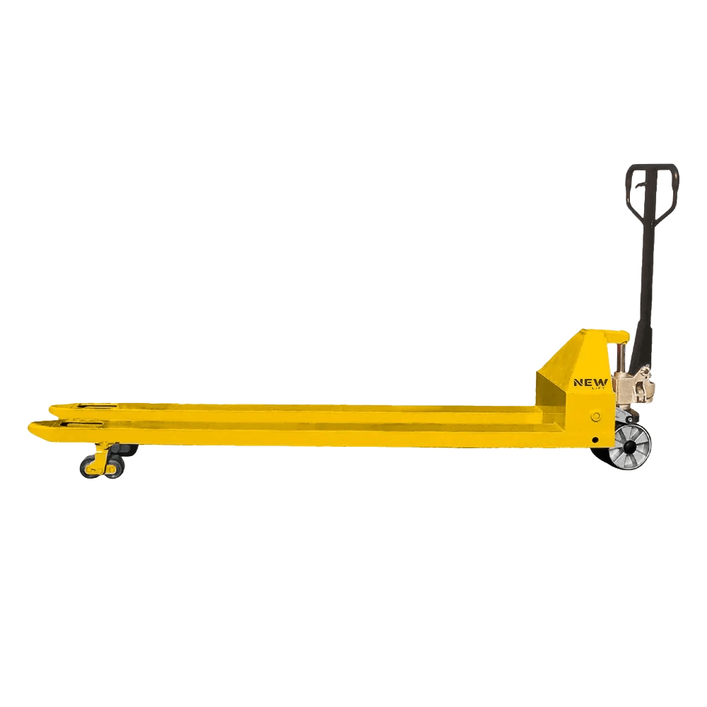1.8 metre uzun çatal manuel transpalet, 2 ton taşıma kapasitesi ve sağlam yapısıyla mobilya, inşaat ve endüstriyel uzun yüklerin güvenli ve dengeli şekilde taşınmasını sağlar.