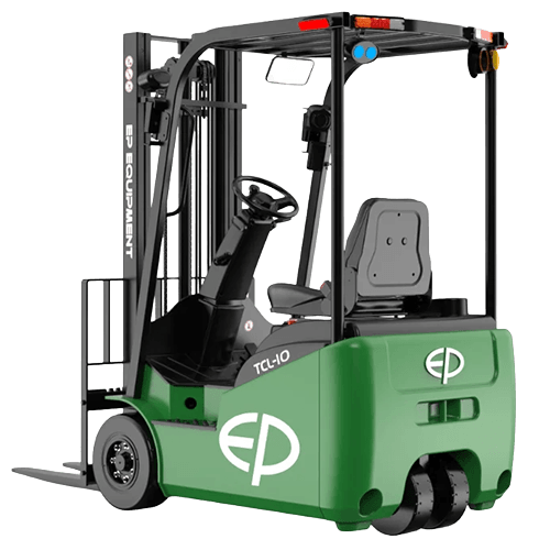 EP TCL101 elektrikli forklift, 1.000 kg taşıma kapasitesi, 80V Li-ion batarya teknolojisi ve süper kompakt 3 teker tasarımı ile dar koridorlar, mezzaninler ve düşük tavanlı alanlar için özel olarak geliştirilmiş, yüksek manevra kabiliyetine sahip profesyonel bir çözümdür.